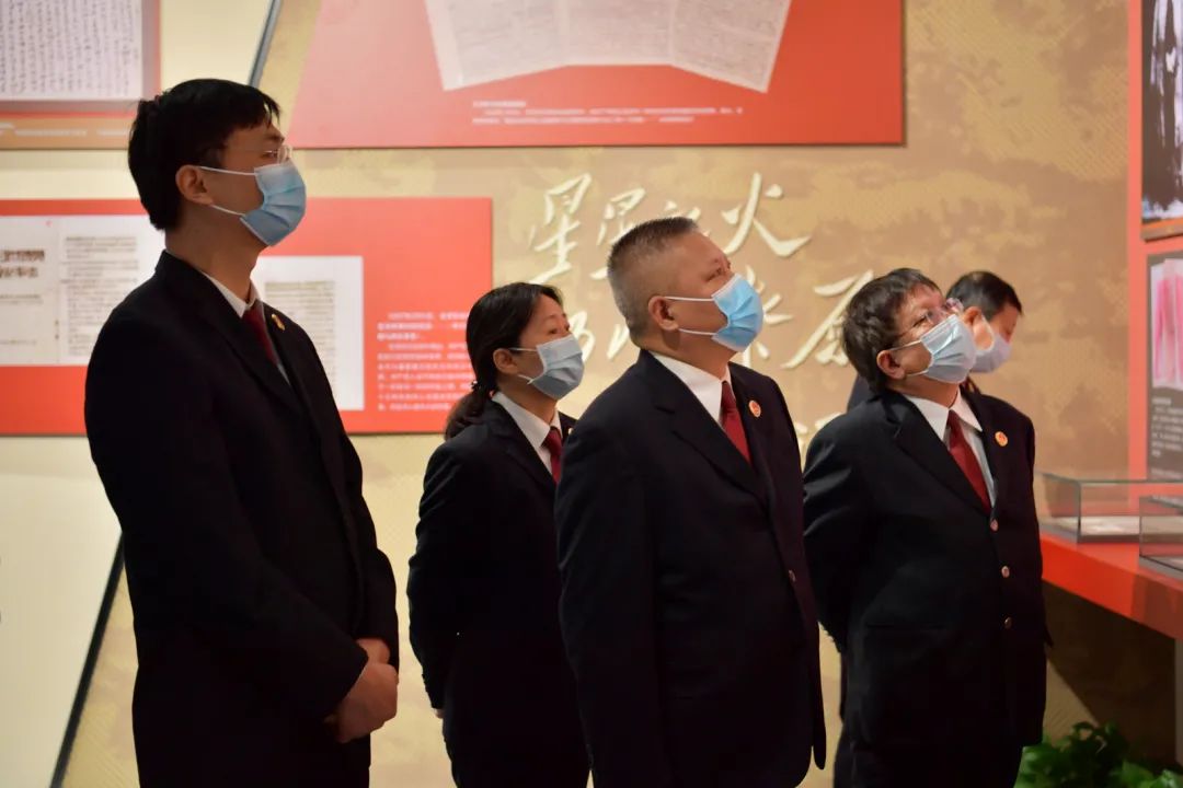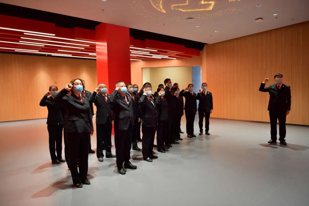 在讲解员的带领下,郑州铁检院党员干警逐一走过“经典论述”“理想信念”“永葆初心”“时代先锋”“出彩中原”五个展区,认真聆听讲解,仔细观看展板、实物、图片和影像资料,了解档案背后的故事,感悟党的初心和使命,并在宣誓厅共同重温入党誓词。
